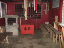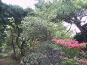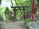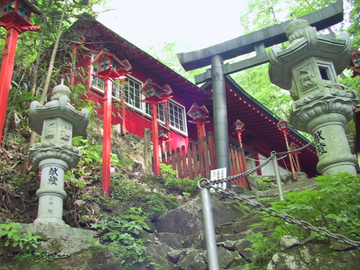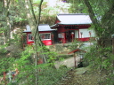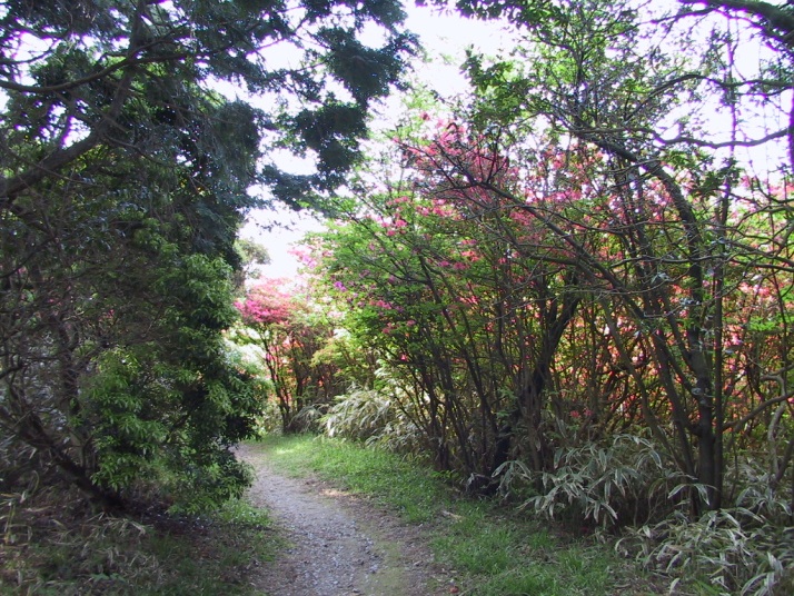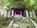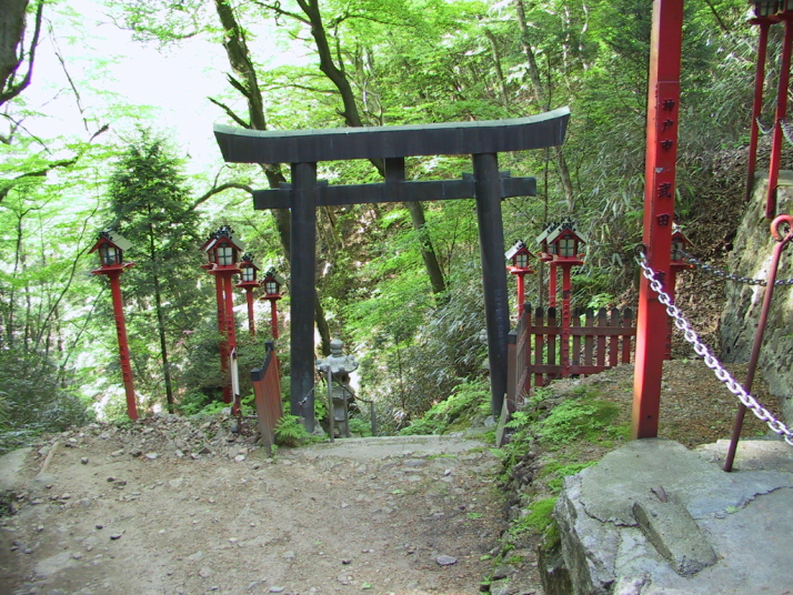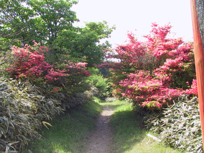 藤堂高虎公が伊予の国から慶長13年(1608)、伊勢・伊賀の国の藩主として赴任の際、家来の山内某氏に伊勢 伊賀両国の鎮護を願い創建させたもの。 青山高原三角点から徒歩1.2q。以前にも訪れたことがあるので気楽に神社に向かう。 野鳥の囀りと山ツツジの花を楽しみながら、歩を進めた。 神社まではほとんど下り道だ。ちょっと帰りの上りを心配しながらゆっくりと歩く。 急な階段を息を切らしながら、ブナ原生林の中を進むこと30分。やっと神社に到着。 神社の境内には蛙の置物が多数あった。なんと本尊前には、狛犬ならぬ蛙が一対祭ってあった。 |
