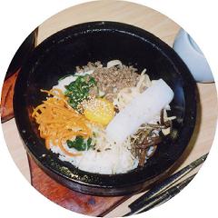 最近日本でも定番になりつつある石焼きビビンバ。東大門のドウサンタワー内の店で食べる。 |