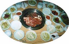 ブルコギだけではちょっと満腹感がでず。そこで、焼き肉を注文。 出てきたのは、写真のようなもの。どちらかというと、日本のすき焼きに似たものだった。あまがらく煮たものだった。所変われば品変わる。よくいったものだ。 |