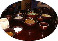 韓国の家庭料理を食べさせてくれる店に行った。ナムサン公園内タワー下にある店である。ここでは、民族芸能を見ながら食事ができる。 第一日目の食事であったため、その辛さにびっくり。!! ひめは、これ食べれない・・・。でも、nanaは、辛いでもおいしいと舌鼓。 驚いたのは、メインの料理についてくる野菜の入った小鉢の多さ。この当たりが日本の料理とは異なるところだ。 代謝を進め、ヘルシーで、数多くの味が堪能できる料理に満足。 |