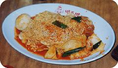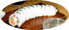 日本でいう海苔巻きであろうか。写真は、海苔の上にご飯が巻いてあるものだが、日本と同じように海苔が上のものもある。また、薄焼き卵で巻いたものもある。中にはたくさんの野菜が入っている。 人で賑わう南大門や東大門などの店屋の店頭で販売している。おやつ代わりに食べている人もいた。 |