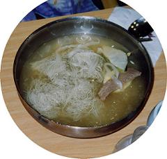 これは 全然 辛くない!辛いのが苦手な人におすすめ 薄味で 透明なスープ 麺は コシがあってすごく細い あまり 味が薄いので 塩をかけて食べていた人もいた。 |