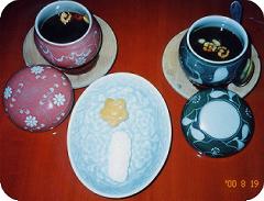 メニューには韓国の伝統茶と書いてあった。 いろいろな薬草を煎じてあるようなお茶で高血圧とか貧血性とか肩凝りとか効能に応じて四種類ぐらいのお茶がメニューにあった。 これとは別に、喫茶店で、ユジヤチャを飲んだ。ユジヤチャは柚茶と書いてその名の通り柚子のお茶。柚茶も伝統茶の一種かな。 |